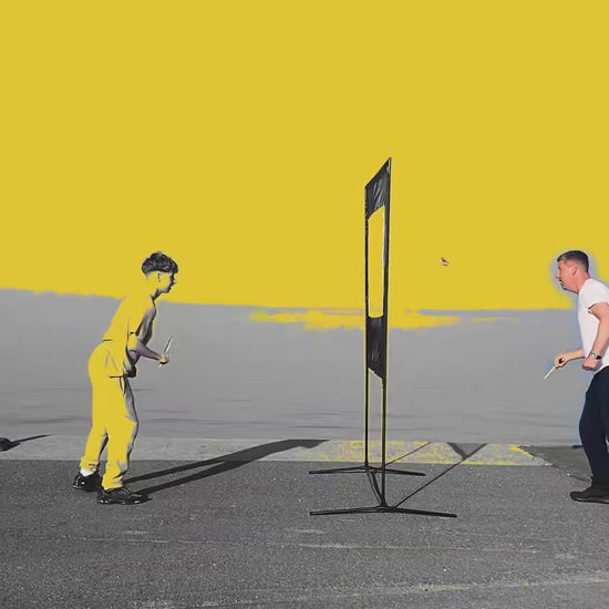 Spillesættet kan samles utrolig nemt på få minutter, og der medfølger dansk samlevejledning med billeder, så du nemt og hurtigt kan begynde at spille. Husk at sikre det med de medfølgende pløkker i blæsevejr.